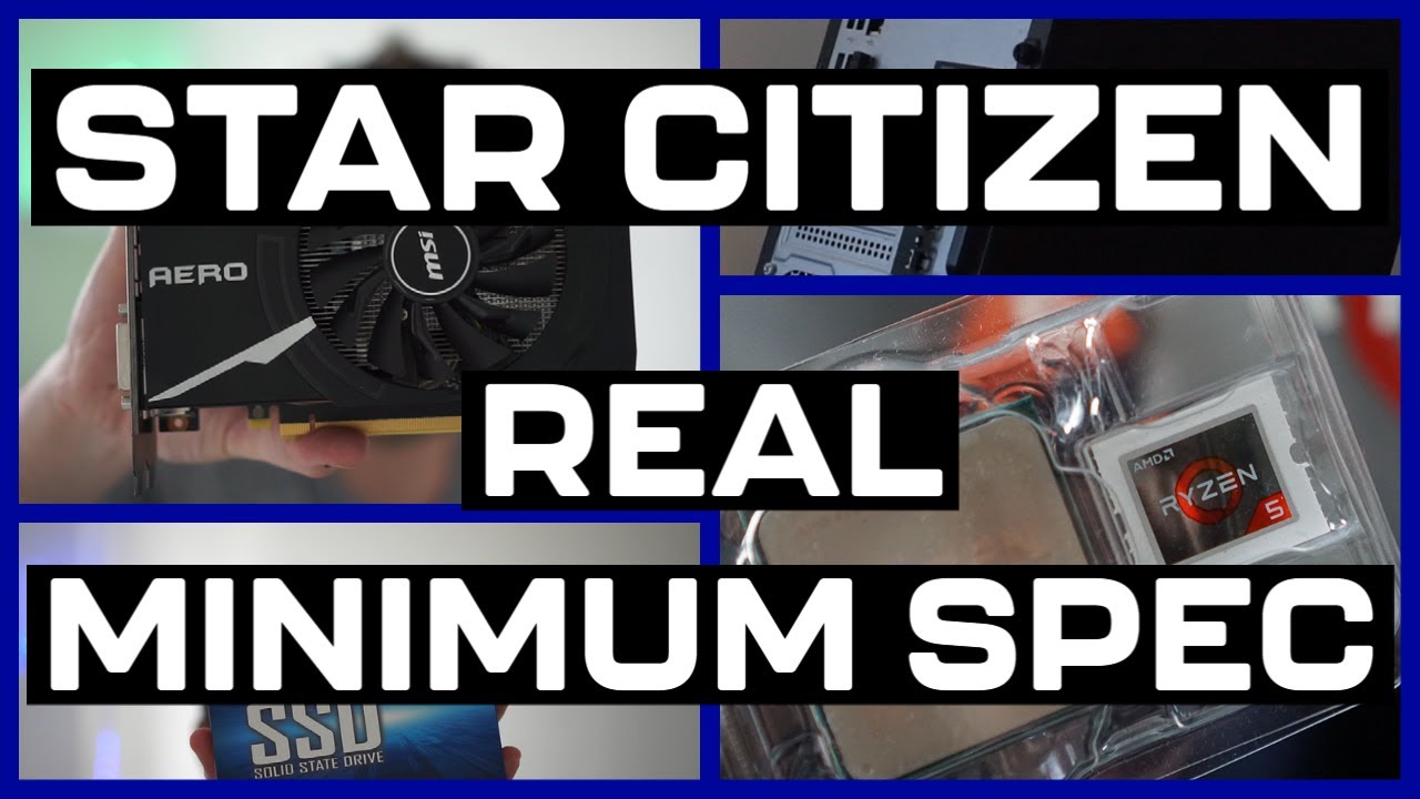 The minimum specs for Star Citizen include a quad-core CPU (Intel i7 or Ryzen 5 1600), 16 GB RAM, DirectX 11 GPU with 4 GB VRAM (GTX 1060 / RX 580), SSD storage, and Windows 10 64-bit.